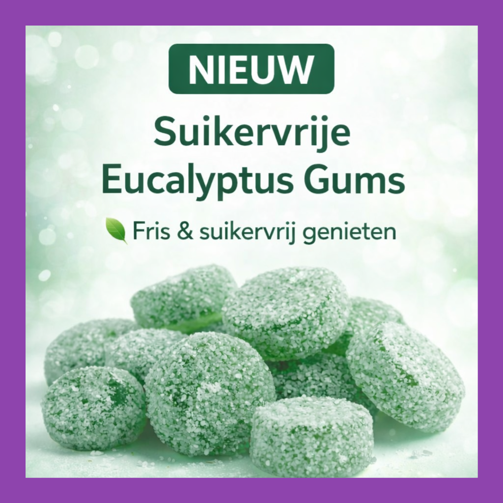 Met de toevoeging van Suikervrije Eucalyptus Gums bieden we nu ook een heerlijke frisse variant aan. Perfect voor iedereen die eens iets anders wil proberen dan fruitige snoepjes.